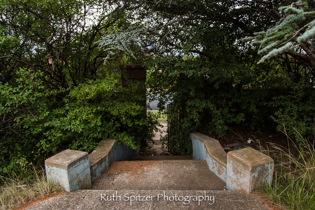 The walls on the inside are lined with tall dense trees, in various shades of green, lush and inviting giving just the right illusion of mystery beyond, as you’re only able to view a small peak of the 3rd level. So we venture into the side street for a better view and access point and within seconds, my mouth is literally hanging open as we come to a stop. I’m momentarily speechless at the derelict beauty of the exterior.